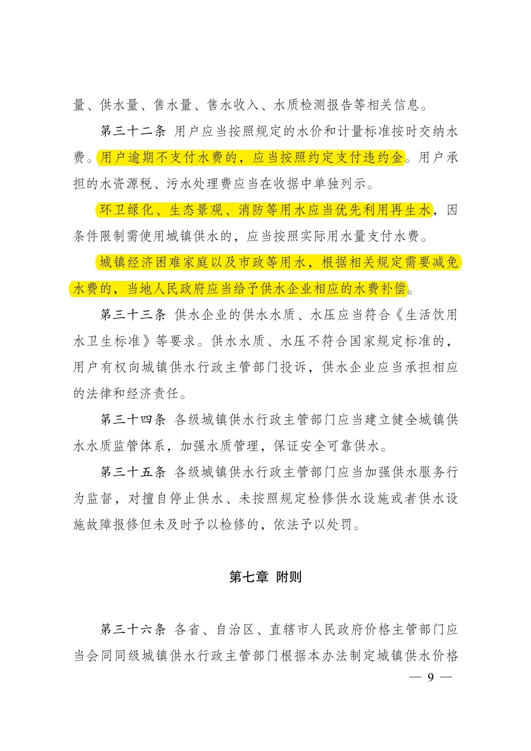 答:兩個《辦法》的修訂出臺,有助于進一步規(guī)范城鎮(zhèn)供水價格管理,保障供水、用水雙方合法權(quán)益,促進城鎮(zhèn)供水事業(yè)健康發(fā)展,節(jié)約和保護水資源??紤]到我國地域廣闊,不同地區(qū)水資源稟賦條件、經(jīng)濟發(fā)展水平、社會承受能力等情況差異較大,兩個《辦法》對完善城鎮(zhèn)供水價格機制作出了框架性要求,一些具體參數(shù)設(shè)定和指標考核等需要各地區(qū)結(jié)合當?shù)貙嶋H進一步細化明確,各地應(yīng)當制定出臺具體辦法或?qū)嵤┘殑t。