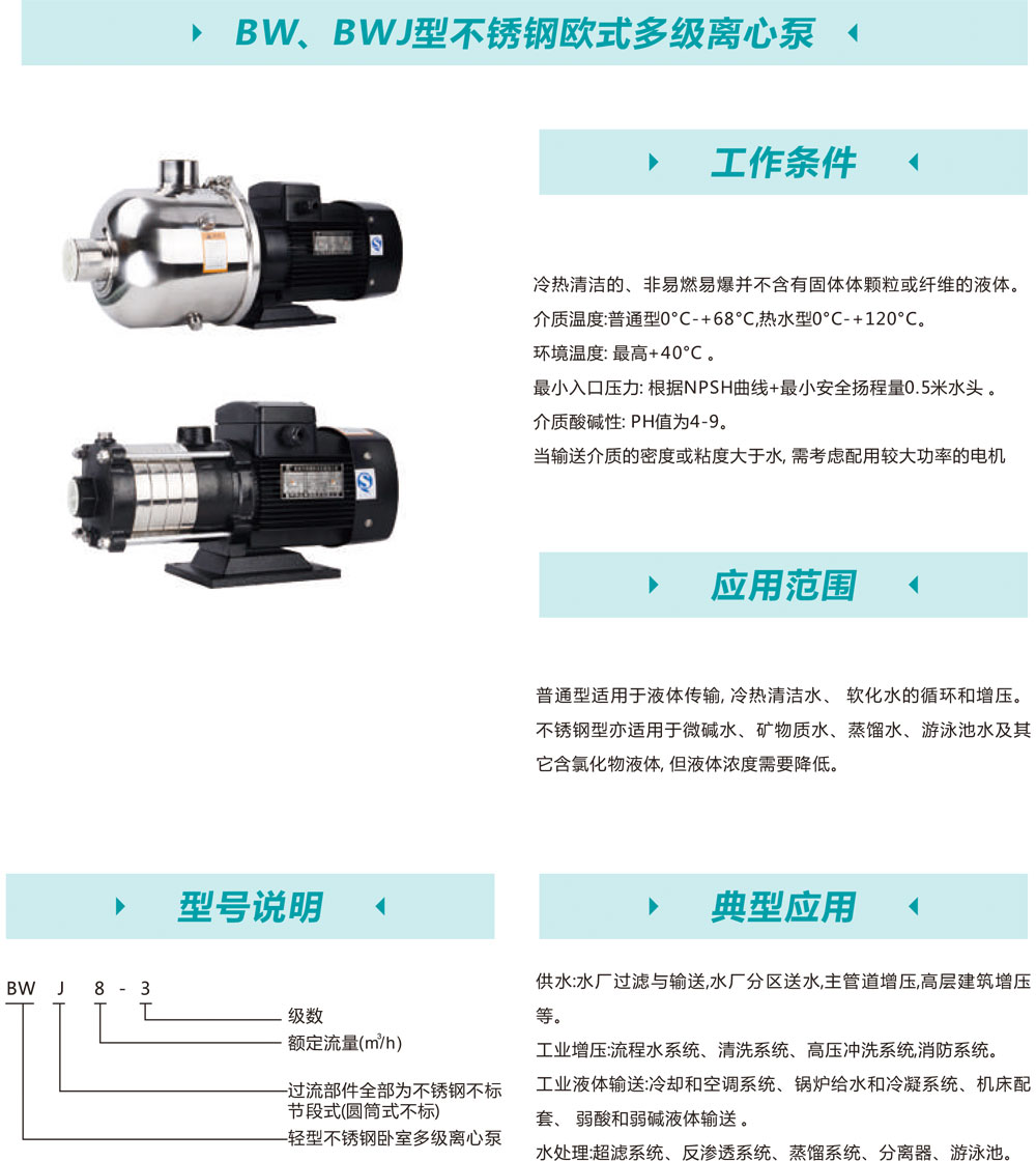 bw、bwj型不銹鋼歐式多級(jí)離心泵