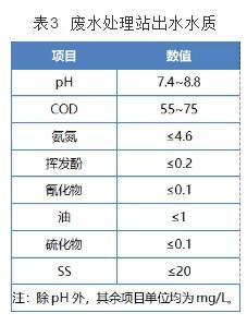 酚氰廢水處理站正常投運(yùn)后,出水水質(zhì)穩(wěn)定達(dá)標(biāo),其出水水質(zhì)如表 3所示。