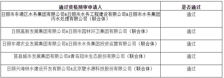 日照市全域水環(huán)境綜合治理ppp項(xiàng)目社會資本方采購項(xiàng)目資格預(yù)審結(jié)果公告