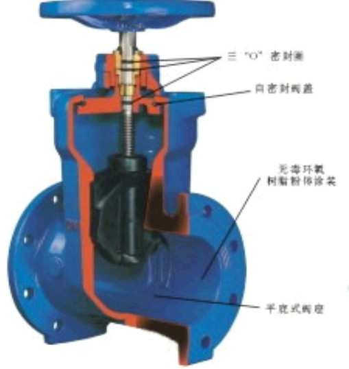 轉(zhuǎn)動(dòng)手輪,通過(guò)手輪與閥桿的螺紋的進(jìn)、退,提升或下降與閥桿連接的閥板,達(dá)到開(kāi)啟和關(guān)閉的作用。